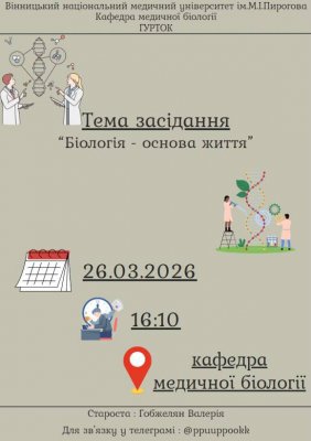 Шановні студенти, кафедра медичної біології запрошує вас долучитись до інтегрованого курсу «Науки про життя»