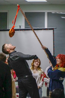 Хлопці опановували давній обряд кусання обрядового коржа — калити: той, кому вдавалося вкусити, отримував солодкий подарунок із передбаченням, а хто не досягав успіху — співав українську народну пісню.