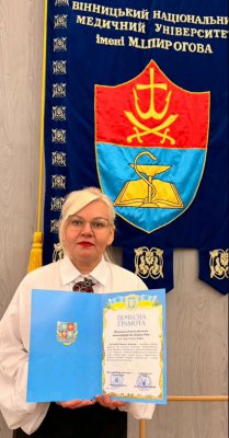 Психолог Університетської клініки та викладач кафедри педагогіки та психології ВНМУ Наталя Шатайло отримала Почесну грамоту Вінницької обласної військової адміністрації та обласної Ради за високий професіоналізм, відданість справі та значний внесок у збереження психічного здоров’я людей.
