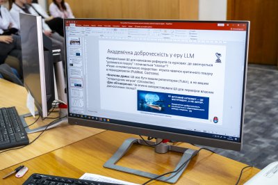 Особлива лекція, присвячена етиці використання штучного інтелекту (ШІ) в процесі навчання, відбулась 18 березня для першокурсників медичного та фармацевтичного факультетів. Почалась вона з презентації симулятора — власної розробки кафедри біофізики, медичної апаратури та інформатики ВНМУ.