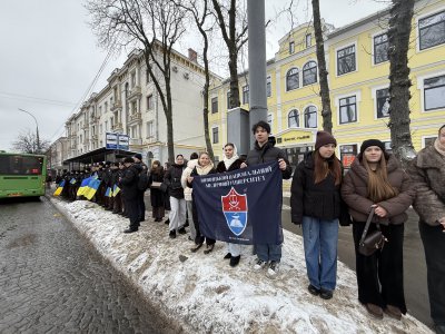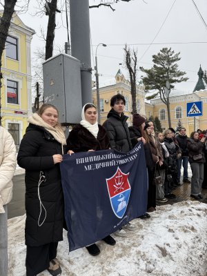 Його утворили у центрі міста понад 200 вінничан, студентів і курсантів із прапорами й плакатами. Студенти Вінницького національного медичного університету долучились до флешмобу із прапором ВНМУ, щоб разом з учасниками акції підтвердити: Україна єдина, зґуртована й непохитна — від Сяну до Дону.