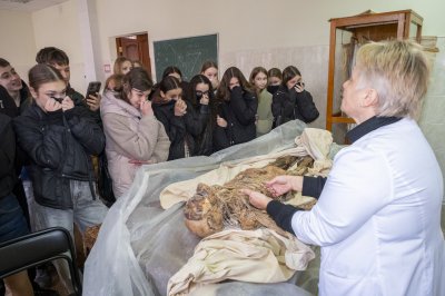 Візит ліцеїстів до ВНМУ розпочався на кафедрі медичної біології, де їх зустріла організаторка екскурсії доцентка Тетяна Полеся. Після докладної ознайомчої лекції клас у супроводі заступника декана медичного факультету № 1 Юрія Шкарівського перейшов на кафедру анатомії людини, щоб досліджувати будову людського тіла разом із доценткою Надією Шпаковою.